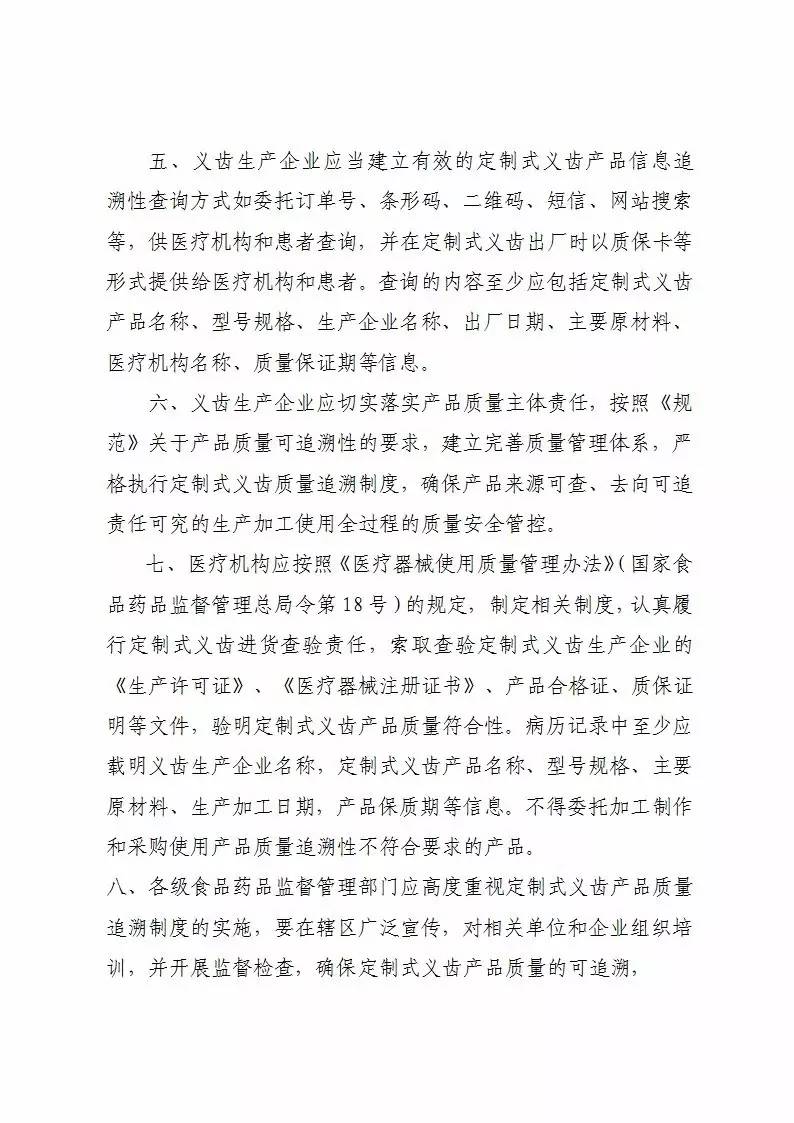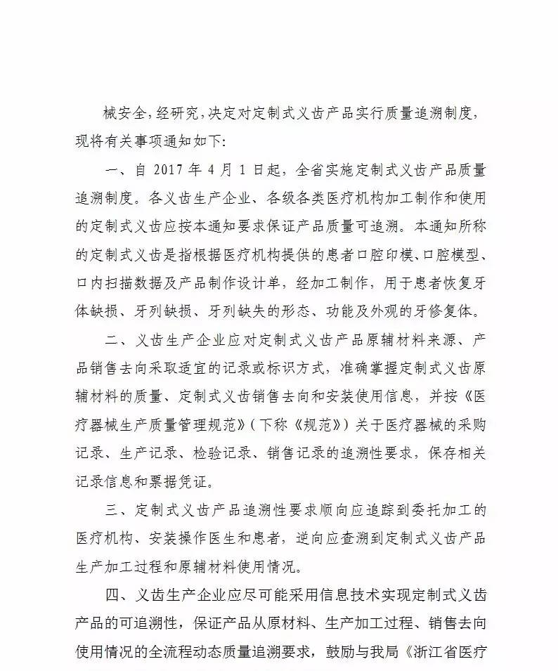 浙江省食品藥品監(jiān)督管理局關(guān)于實(shí)施定制式義齒產(chǎn)品質(zhì)量追溯制度的通知
